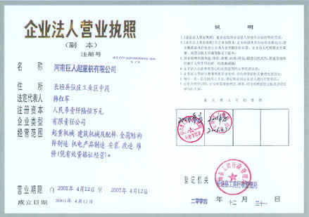巨人起重机公司资质
